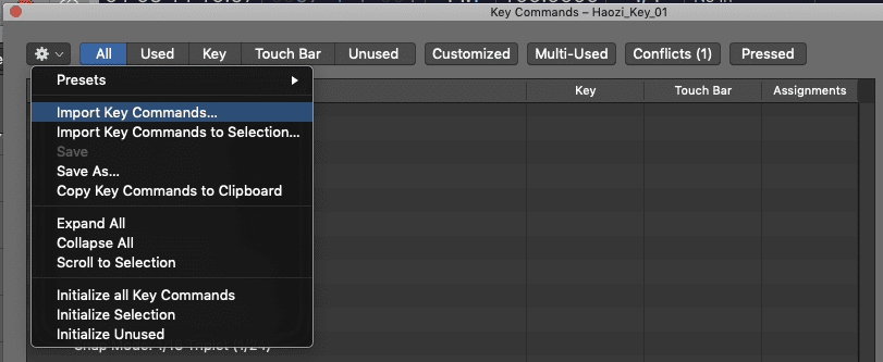 自從Logic Pro X開始後,為了方便錄製課程,一直都在將就預設的快速鍵,最近想把早期Logic 9自訂的快速鍵重新整理分配一下移植到Logic Pro X中。